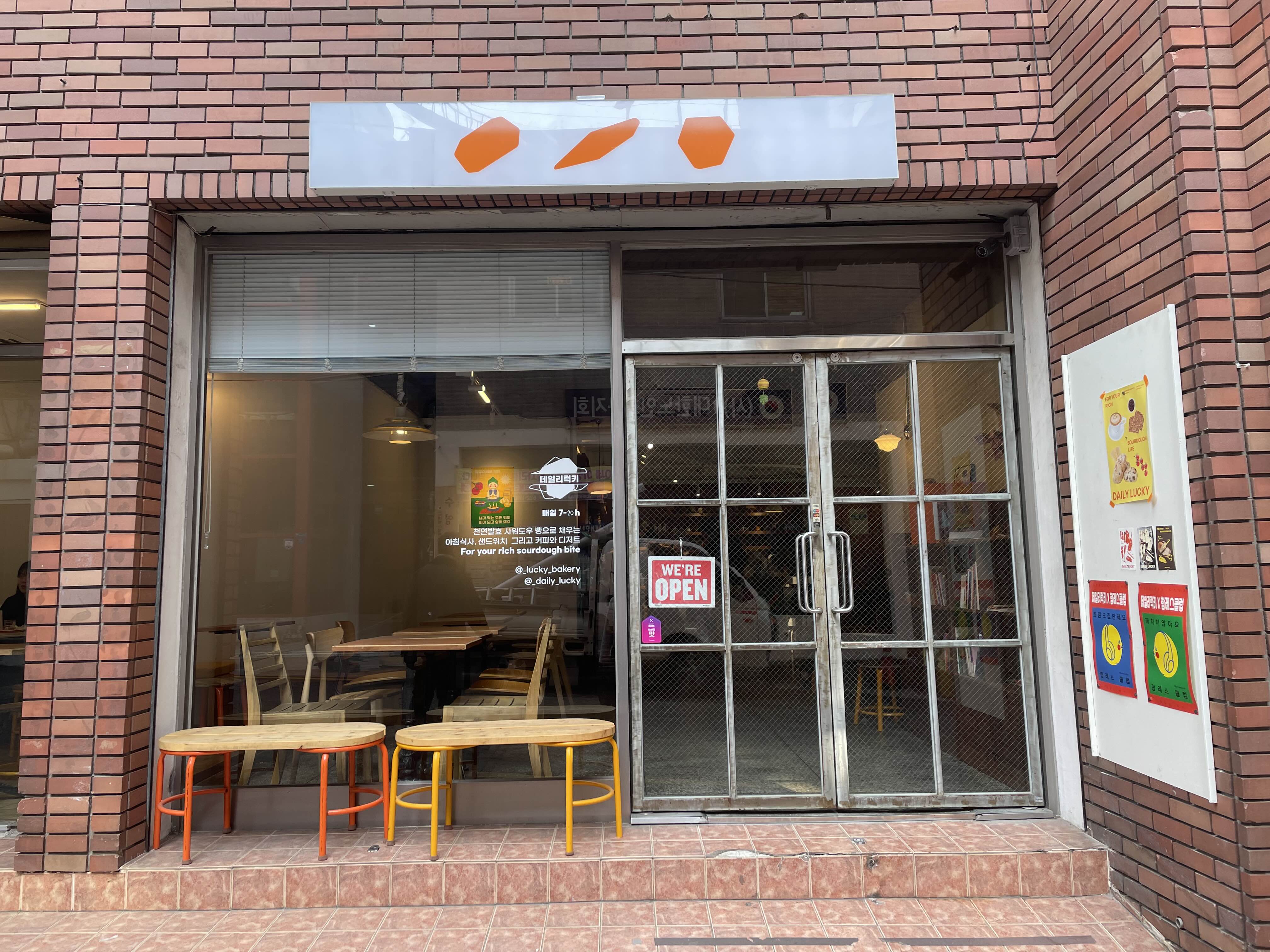수영 민락에 유명한 럭키베이커리의2호점! 데일리럭키 데일리럭키오픈 07:00-20:00반려동물 동반가능하드빵과 다양한 소품으로 꾸며져 있는데일리럭키🍀야외도 있다.빵을 먹으려면 손이 깨끗해야지! 세면대가 가게안에 있어서 좋았다.샌드위치 종류도 엄청 다양하고사워도우 빵도 많아서 고르기가 어려웠다....!사워도우란 효모가 발효하는 과정에서 자연스럽게 새콤한 맛이 생겨났고 사실상 모든 빵이 ‘사워도우(Sourdough)’, 즉 글자 그대로 신 반죽이었죠. 반죽이 천천히 발효하는 동안 젖산이 생성되는데, 이로 인해 약간 시고 쌉싸름한 풍미가 생겨나 ‘신 반죽’이라는 의미의 사워도우가 빵의 이름으로 자리잡게 된 셈입니다. 출처: 미쉐린 가이드고심끝에 고른 빵!잠봉뵈르 샌드위치와 갈릭치즈 포카치아🥖🥪담백한 포카..